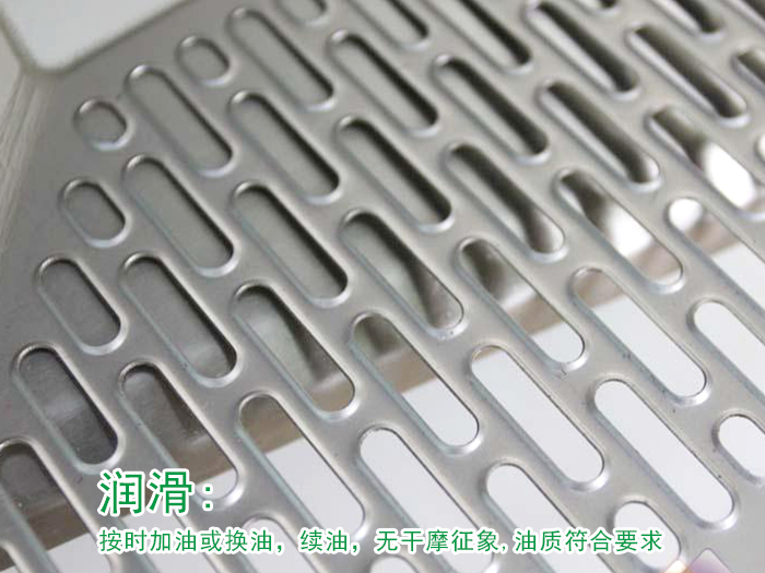 金屬網(wǎng)帶內(nèi)外各滑動面、絲杠、齒條、齒輪箱、油孔等處無油污,各部位不漏油、不漏氣,設(shè)備四周地切屑、雜物、臟物機(jī)械工程師要清掃干凈;