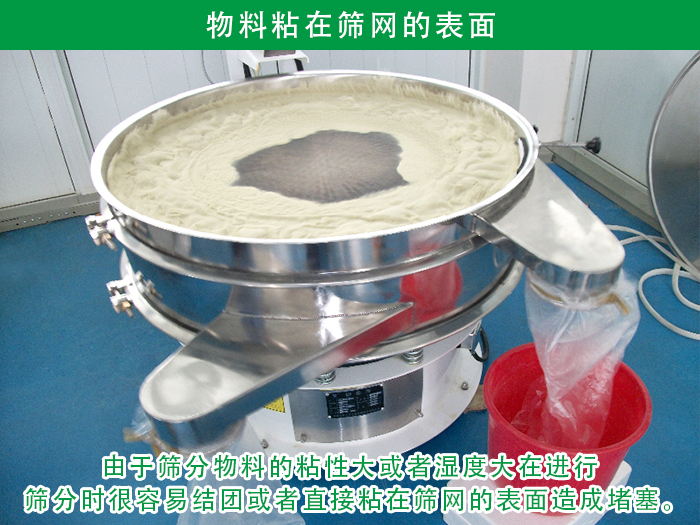 由于篩分物料的粘性大或者濕度大在進(jìn)行篩分時(shí)很容易結(jié)團(tuán)或者直接粘在篩網(wǎng)的表面造成堵塞。
